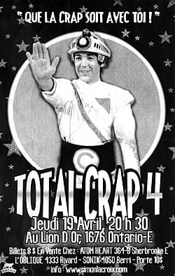 Le festival Total Crap risque de faire un malheur cette année. Il sera présenté le 19 avril au Cabaret le...