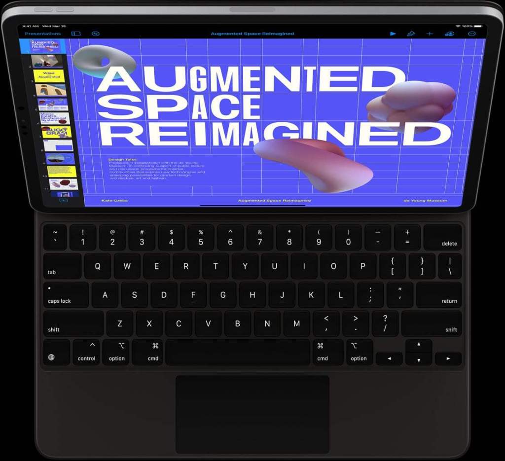 Mais c’est l’accessoire du iPad Pro qui déchire sa race, un nouveau clavier, magnifique, avec touche rétroéclairé et… avec un trackpad! Oui oui!