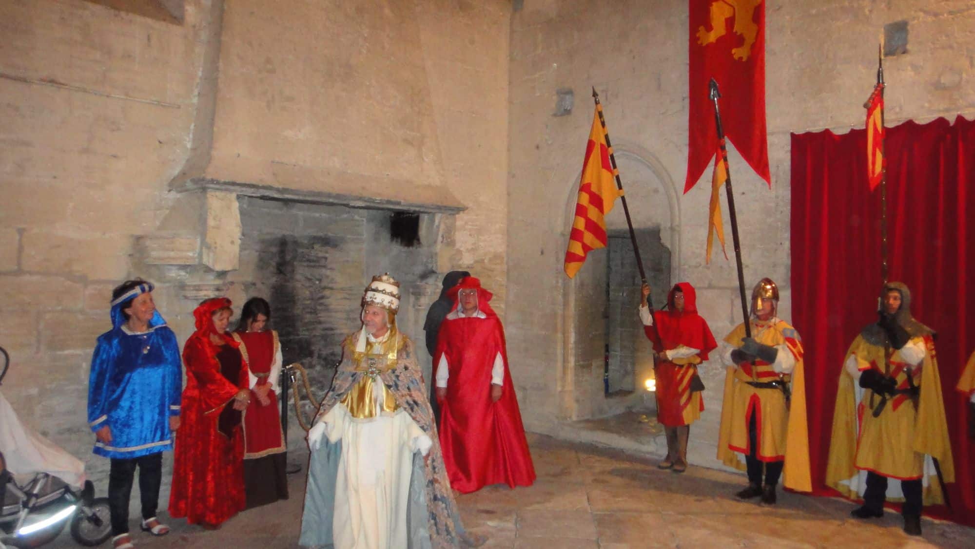 Hébergés sur Villeneuve, juste en face d’Avignon, nous découvrons ce magnifique petit village qui organise 4 fois l’an une ballade nocturne au flambeau dans la forteresse du village. Une bonne partie de la population en profite pour se travestir en personnages moyenâgeux, une guide nous introduisant les époques et les personnages qui nous présentaient alors de petites mises en scène, trop mignon!