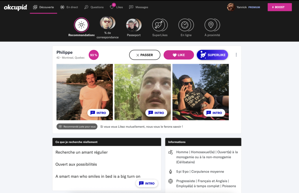 L’apps sur téléphone est plutôt merdeuse. Plus un affichage bancal de la version du site web. Ça ne donne pas le goût. Mais c’est le seul système qui dresse un profil complet d’une personne.